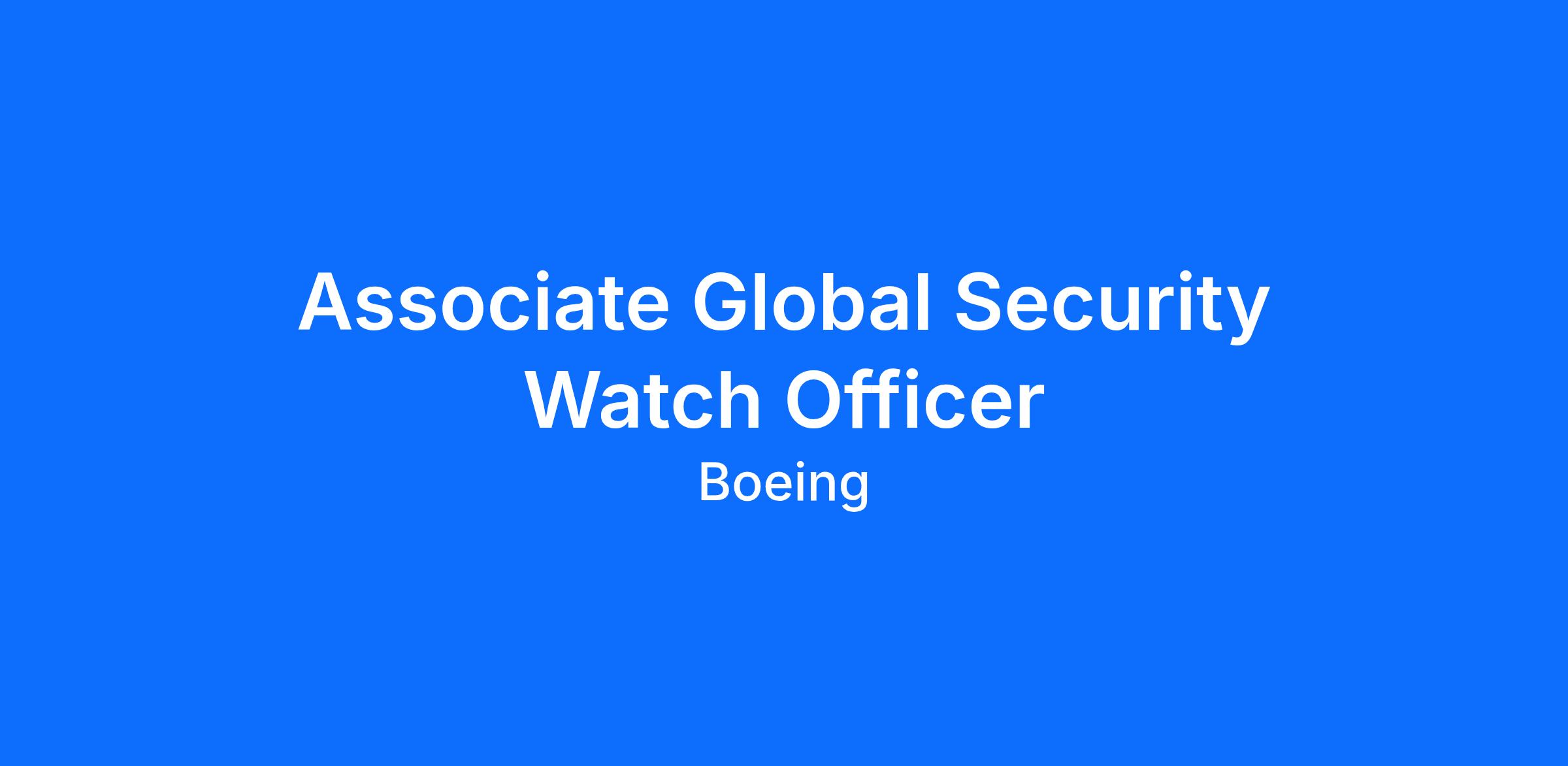 The Boeing CompanyThe Boeing Company is currently seeking an innovative, enthusiastic, security-minded professional to join our Global Security Operations Center (GSOC) team as an Associate Global Security Watch Officer in Mesa, AZ.