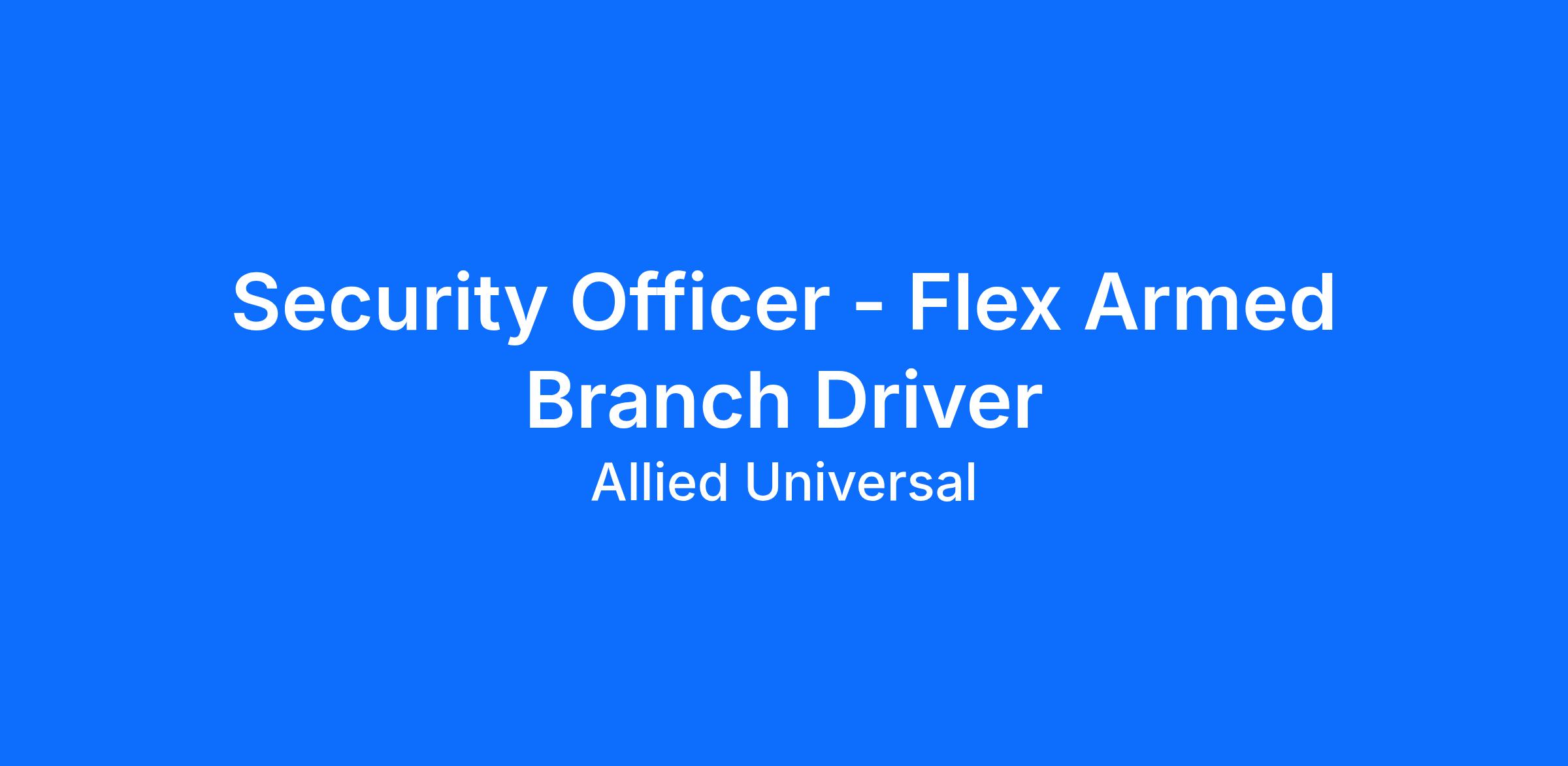 As a Security Officer - Flex Armed Branch Driver in Glendale, AZ, you will serve and safeguard clients in a range of industries such as Financial Institutions, and more. Join a leading team where flexibility meets opportunity. As a Flex Part-Time Security Officer, you can build a schedule that works for you and explore new roles using our Claim a Shift platform. Learn more: aus.com/earnmore. As an Armed Patrol Officer at a financial institution location, you will conduct routine patrols, stay highly visible, and respond to security-related concerns with strong customer service and clear communication. You will help to protect people, property, and assets through attentive presence, accurate reporting, and teamwork aligned with Allied Universal values of agility, reliability, innovation, and integrity. This is an armed and driving post requiring an armed guard card/license and a valid driver’s license.