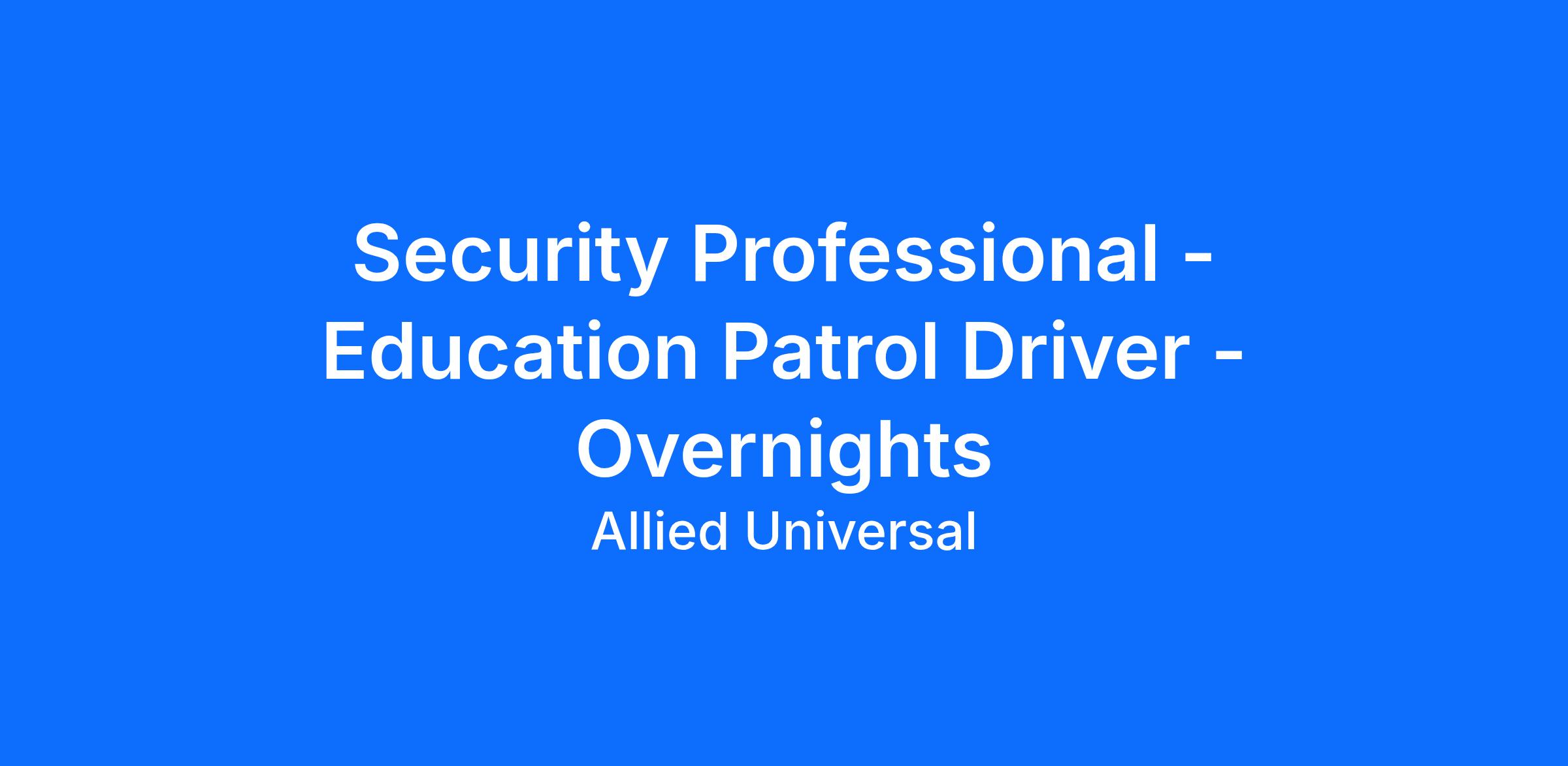 Allied Universal® is an Equal Opportunity Employer. All qualified applicants will receive consideration for employment without regard to race/ethnicity, age, color, religion, sex, sexual orientation, gender identity, national origin, genetic information, disability, protected veteran status or relationship/association with a protected veteran, or any other basis or characteristic protected by law. For more information: www.aus.com.